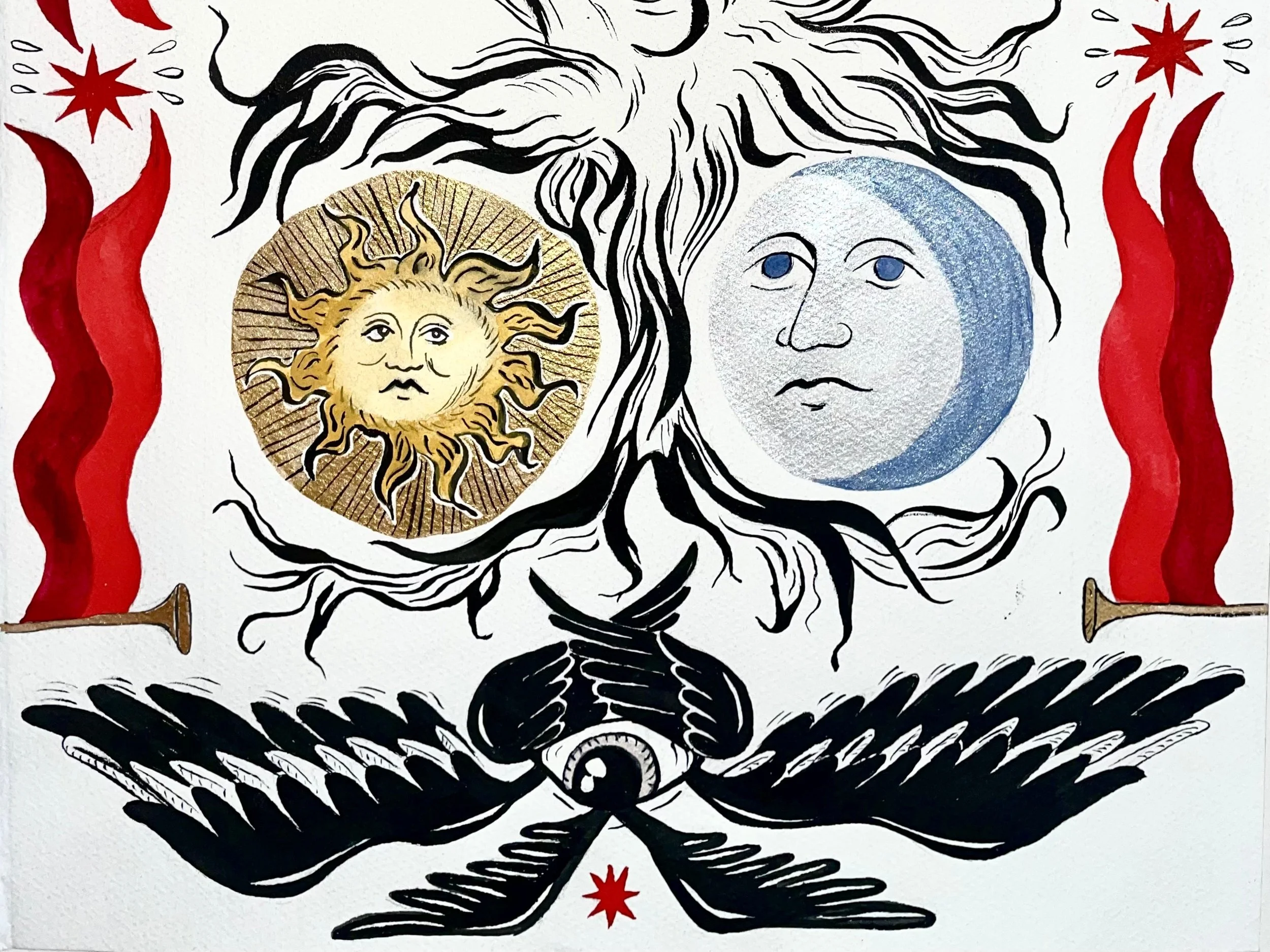 An exploration of the synchronicities between western alchemical, mystical, and Catholic imagery, Half Sinner, All Saint follows the seven stages of alchemical transformation, the symbolic chemical creation of the philosopher’s stone as a direction to spiritual actualization. In the steps of Calcination, Dissolution, Separation, Conjunction, Fermentation, Distillation, and Coagulation, the Prima Materia, one’s spirit-ego, is broken, remade, tested, and ultimately reborn.