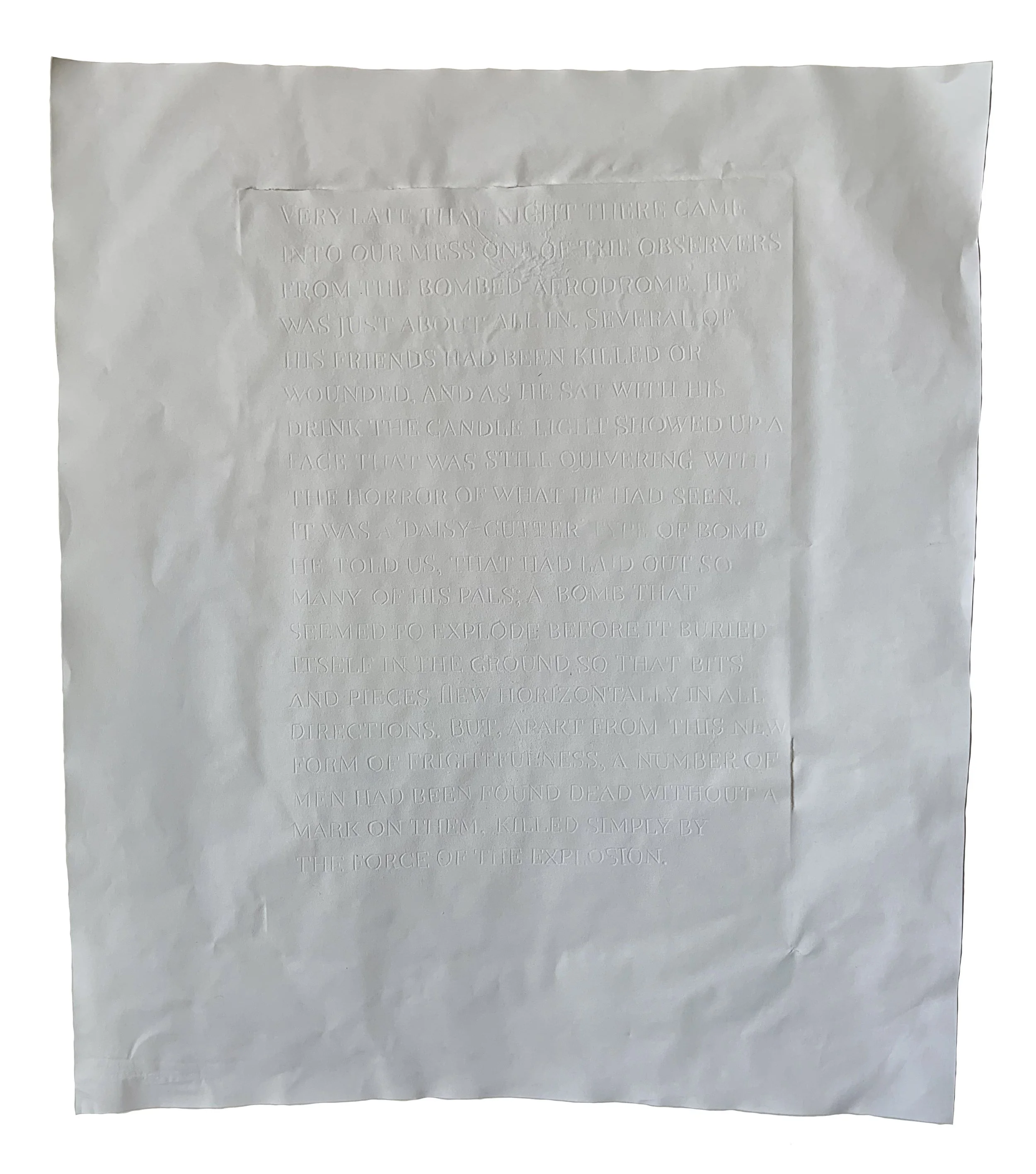 Your exhibition, Darkness Shall Cover Me, investigates the first World War and night bombing. Your exhibition statement aims to look at the tension and lived experiences between bomber pilots and bombing victims. How are you exploring the rights to memory and trauma? And can you explain the significance of the materials used to tell these individual stories?