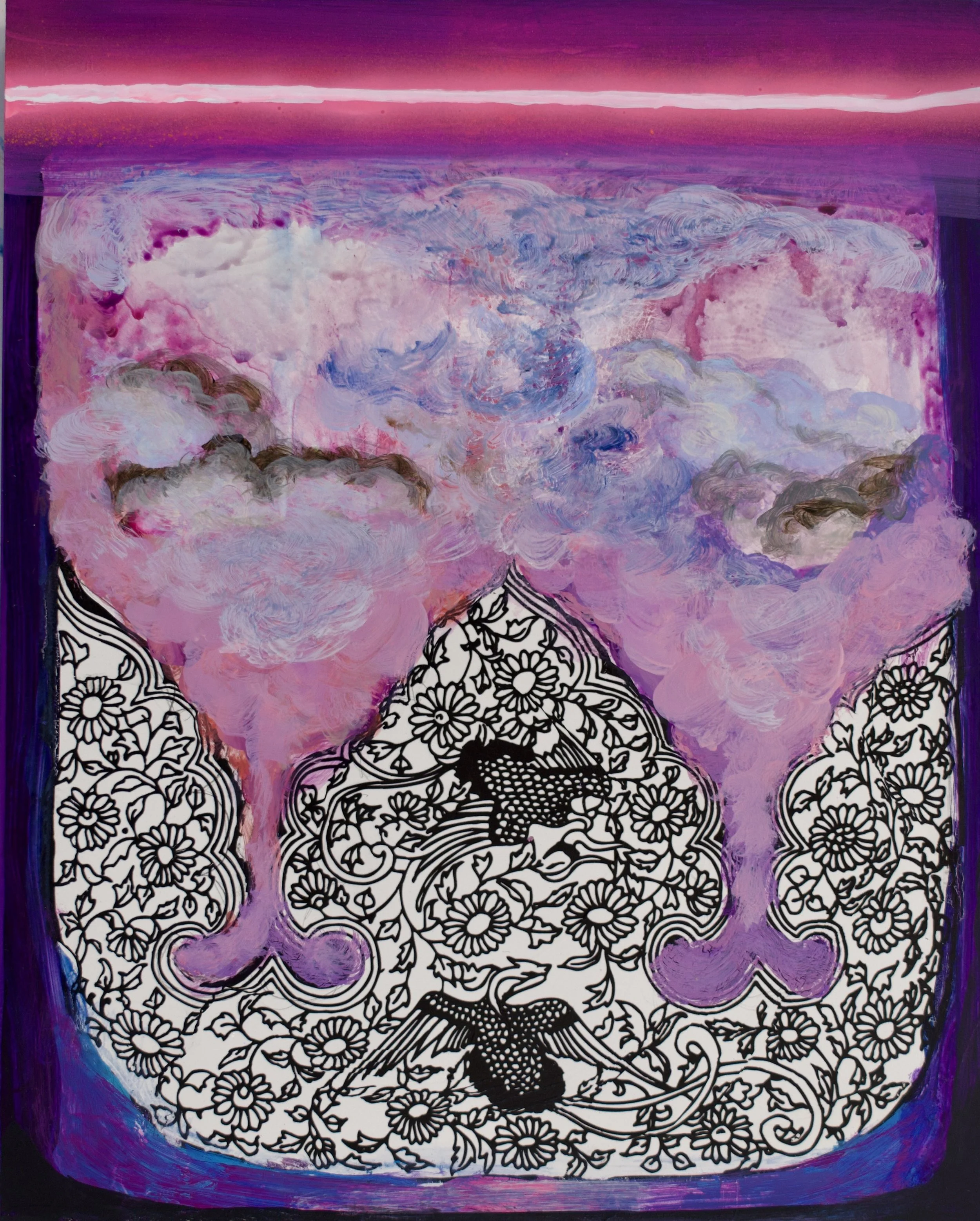 I think the entry point for my work is often the visual itself, although, there is so much personal experience and thoughts behind all the work. I believe the work itself should, at foremost, be visually interesting and create a sense of aurora to invite my viewers to look at my work. Then, if people are interested and they start to look into the painting, they start to see those more complex questions.